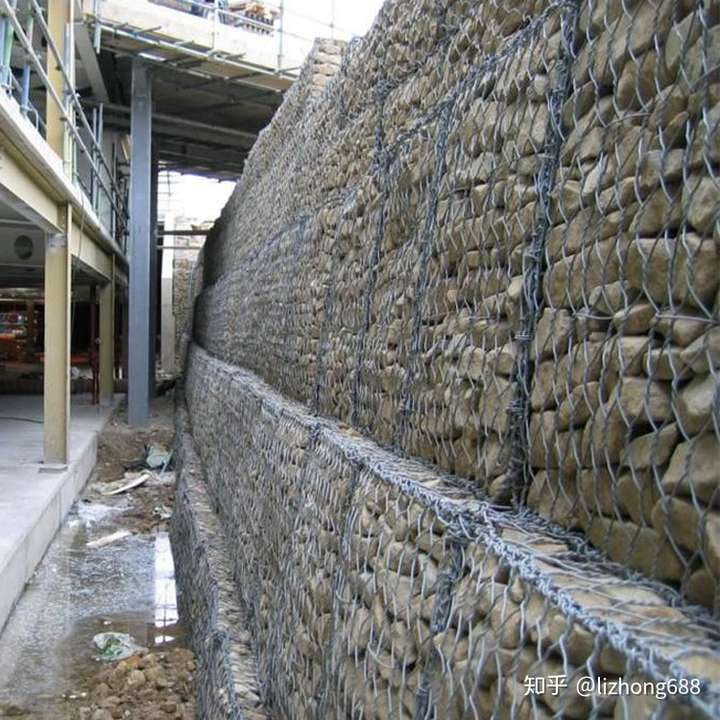 The cages of the gabion net can also be made into triangles and trapezoids. The dams stacked with such gabion net cages are inclined on a plane.